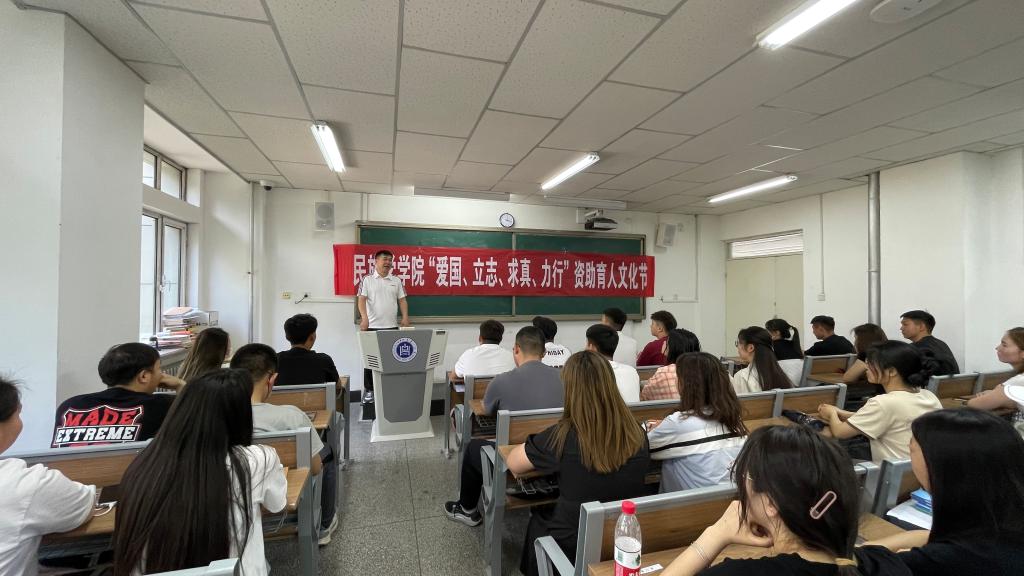 辅导员金玲为同学们讲解国家奖助学金、自治区奖助政策、国家助学贷款、服兵役资助、退役士兵资助、基层就业学费补偿贷款代偿、优秀学生奖学金、勤工助学等资助政策,让同学们放心学习,努力成为一个对社会有贡献的人。