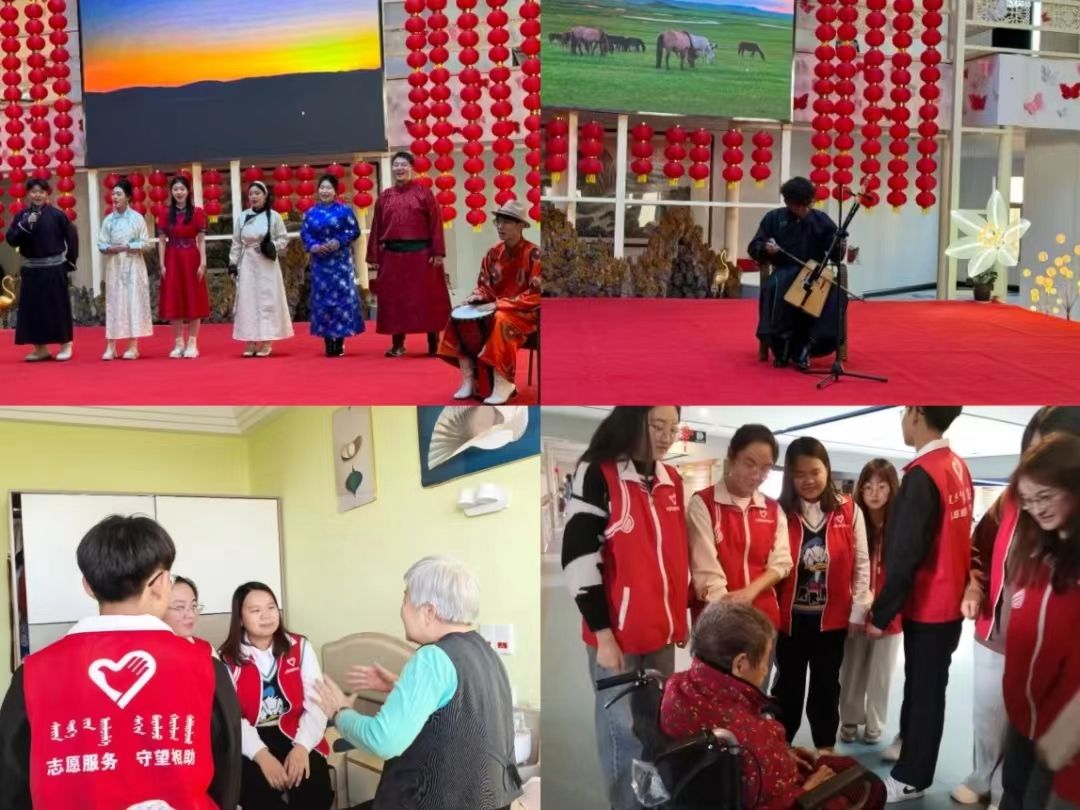 在服务中心演播会场,米乐官网艺术团与爱华中老年联合艺术团的演员们共同为老人们带来了精彩的文艺表演。大学生艺术团表演的民族舞、相声、马头琴演奏等节目得到了老人们的一致好评。