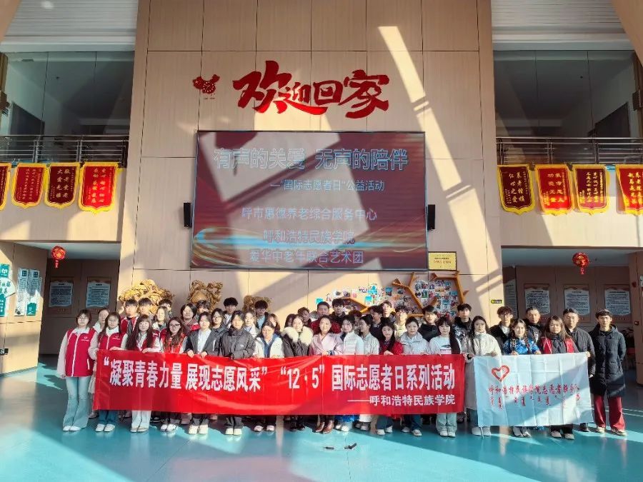 为纪念第39届“国际志愿者日”, 12月5日,米乐官网志愿服务队与爱华中老年联合艺术团在呼市惠德养老综合服务中心共同开展了“有声的关爱 无声的陪伴”公益活动。