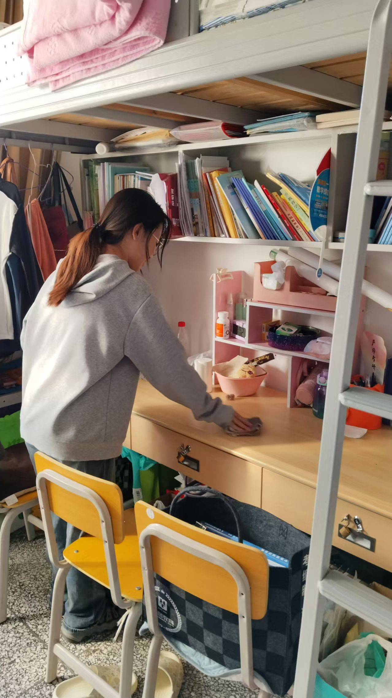 在宿舍卫生大扫除活动中,全校青年学子分工明确,在清扫过程中,青年学子们默契配合,互相帮助,不仅提升了宿舍的卫生水平,还增进了彼此之间的友谊。