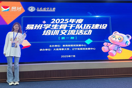 7月2日至5日,由教育部易班发展中心主办,大连海事大学和辽宁省易班发展中心承办的“2025年度易班学生骨干队伍建设培训交流活动(第一期)”在大连海事大学举行,来自全国各地的40余名易班学生骨干参训。米乐官网易班工作站学生骨干、新闻传媒学院冷虹颉同学参加了此次培训班。