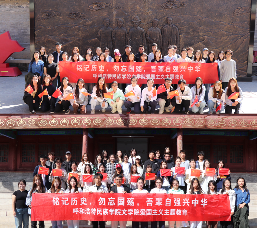 中华人民共和国成立76周年将至,9月28日下午,文学院学生党员、团员及青年志愿者,在团总支书记刘晓带领下,赴绥蒙抗日救国会旧址纪念馆,开展 “赓续红色血脉,我和祖国共成长”迎国庆缅怀活动,为祖国献礼。