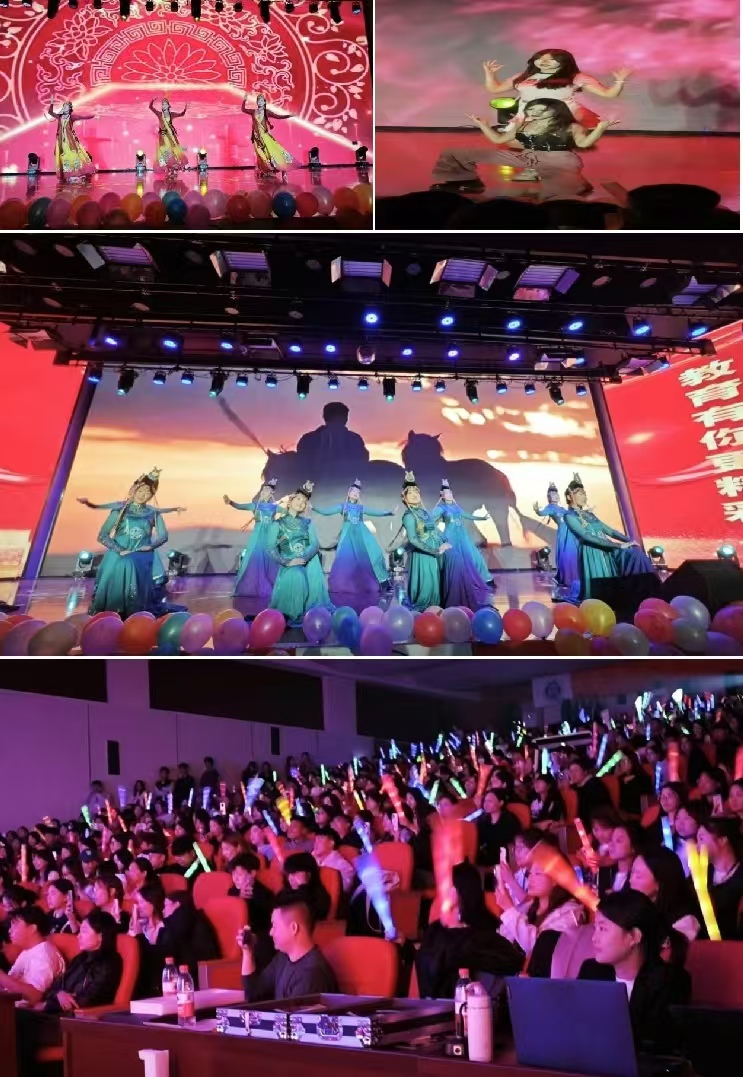 舞蹈节目同样精彩纷呈,不论由高晨程等人带来的《西域玫瑰》还是高旭涵琪和赵柏筠所展现的爵士舞《pink venom》又或者群舞《小马驹》,舞者们的舞蹈动作犹如精心编织的旋律,每一个步伐与每一个旋转都相得益彰,展现出无与伦比的和谐之美。民族舞的优雅、现代舞的时尚,不同舞种百花齐放、交相辉映,为观众带来了一场视觉盛宴。
