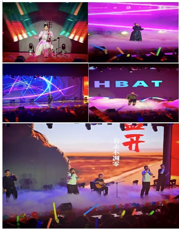 晚会节目众多, 其中歌曲令人回味无穷,黄文静同学带来的是四胡独奏《牧马青年》、李泽雅同学帅气演唱《Shake My Head》、家长布和巴图演唱的《chamaig sanhad》和《bainu》,退伍军人李文海等人合唱的《蓝莲花》以及美丽同学所演唱的《萨日奈》。他们用嘹亮的歌声唱出了青春的活力与激情,一首首动听的歌曲回荡在礼堂上空,让观众们沉浸在音乐的海洋中,享受着音乐带来的美好。