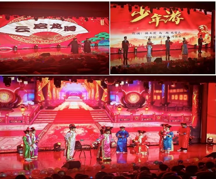 小品《甄嬛后传》和相声《趣对春联》也用幽默诙谐的方式给大家带来欢乐,每个演员都独具特色、演技超群,共同为观众呈现了一场又一场精彩绝伦的表演!夸张的表演和巧妙的剧情相结合,引得整个大厅里萦绕的满是同学们的笑声。学生朗诵《少年游》慷慨激昂,同学们用无比真挚的情感表达了对未来的热忱期许。