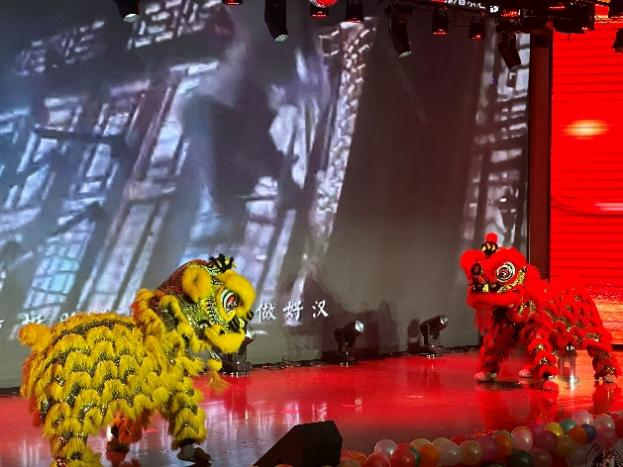 晚会开场,一场精彩绝伦的舞狮表演瞬间点燃了全场的气氛,只见两只威风凛凛的舞狮伫立在场地中央,随着铿锵有力的音乐响起,狮子们开始舞动起来,它们的动作轻盈而敏捷,时而高高跃起,时而低伏下身,将狮子的各种姿态展现得淋漓尽致。