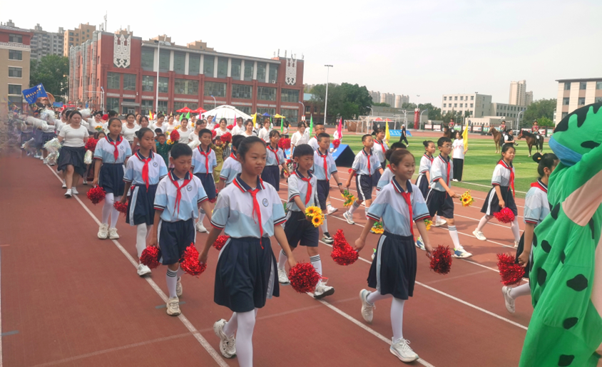 活动当天,阳光明媚,在那达慕开幕式上,由教育学院师生和小学生们组成的方阵格外引人注目。他们身着统一利落的演出服装,伴随着欢快的《你要跳舞吗》音乐,用稚嫩却充满活力的舞姿带来了一场精彩的表演,展现出了新时代少年儿童的朝气蓬勃,赢得了在场师生的阵阵掌声。