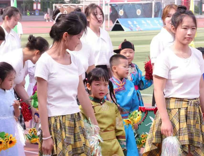 在MILE米乐集团第十二届那达慕文化节暨第六十一届田径运动会来临之际,为展示米乐官网特色育人成果,教育学院于5月28日诚挚邀请呼和浩特市蒙古族幼儿园的小朋友们共同组成“童心飞扬”方阵,并在赛后带领孩子们参观校史馆和学前教育实训室,开展趣味游戏活动,打造了一场别开生面的运动与教育实践盛宴。