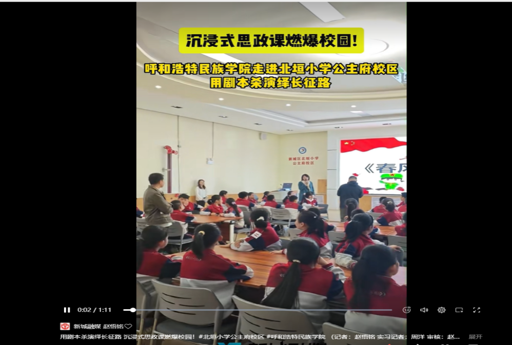 4月10日,教育学院“星火筑梦”创新创业团队联合学院向日葵学生党支部,走进新城区北垣街小学公主府校区,开展大中小思政一体化红色剧本杀主题活动,被新城融媒专题报道。