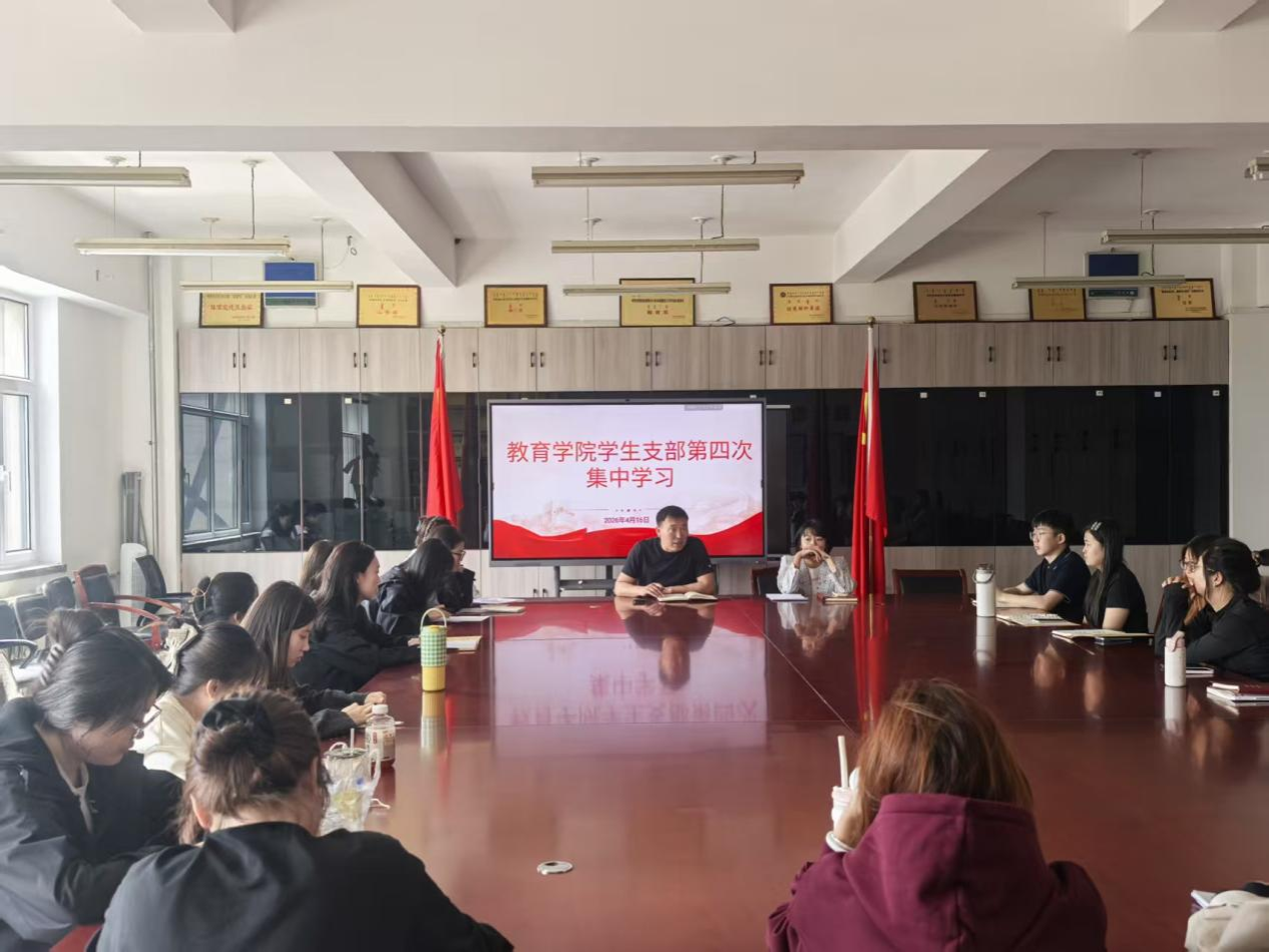 教育学院学生支部开展第四次集中学习 4月16日,教育学院学生党支部在都林楼425室举行第四次集中学习会。会议由向日葵党支部书记高牧涵领学,向日葵党支部与石榴籽党支部全体学生党员参加。 会上,大家认真学习了习近平总书记在雄安座谈会上的重要讲话精神,并传达了关于内蒙古自贸区建设的相关内容。会议强调,学生党员应主动关注国家重大战略部署,提高政治站位,深化对区域协调发展和对外开放格局的认识。 与会党员围绕学习内容进行交流。大家认为,此次学习有助于拓展视野、增强大局意识,后续将结合日常思想实际,持续提升理论素养与党性修养。