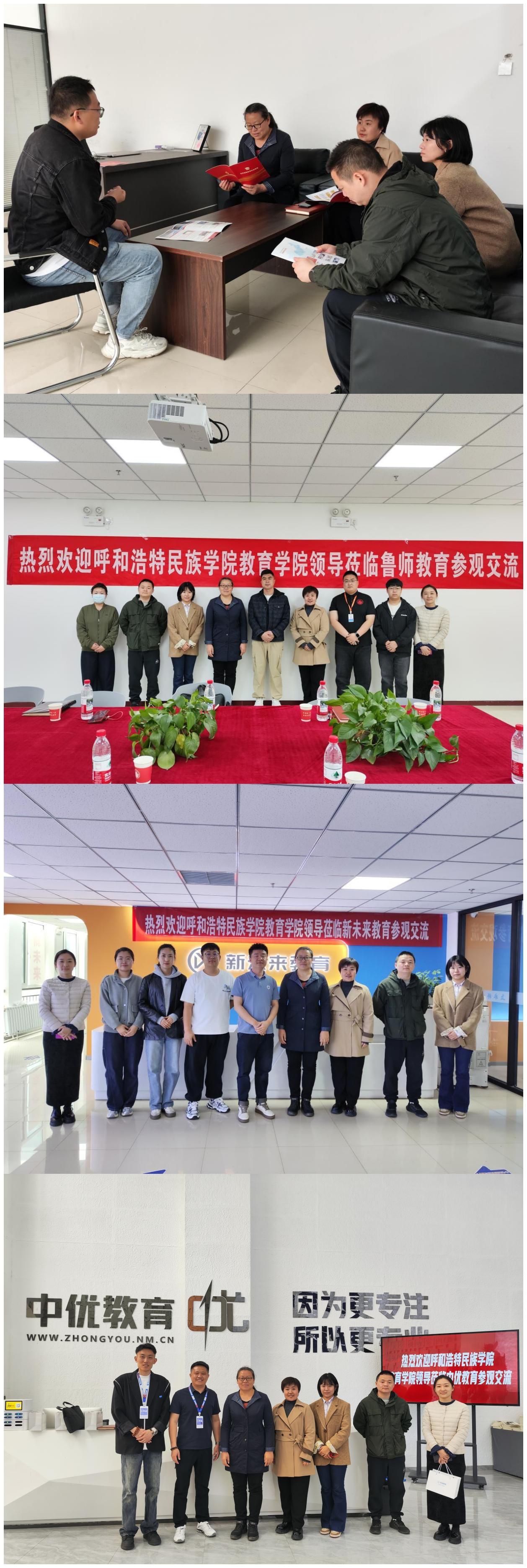 呼和浩特学鲤高职产业园依托线上线下平台及内蒙古途众人力资源公司致力于打造全方位大学生就业平台及校企合作平台。此次访企拓岗,教育学院共走访了产业园区中的四家教育培训机构,包括内蒙古硕成教育科技有限公司、内蒙古鲁师教育咨询有限公司、内蒙古中优教育咨询有限公司、内蒙古新未来教育咨询有限公司。