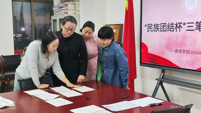 为弘扬中华优秀传统文化,增强学生的文化自信和民族自豪感,11月27日,教育学院在都林楼405、410、425举办第四届大学生“民族团结杯”三笔字大赛院级复赛。比赛设置汉语文书写组和蒙古语文书写组两个组别,每个组别分设钢笔字、粉笔字和毛笔字三个赛道。米乐官网学生积极参加,各展其长,佳作迭出。崔凤珍、其其格、王玉霞老师担任汉语组评委,朱乌英嘎、海鹰、萨日娜老师担任蒙文组评委。