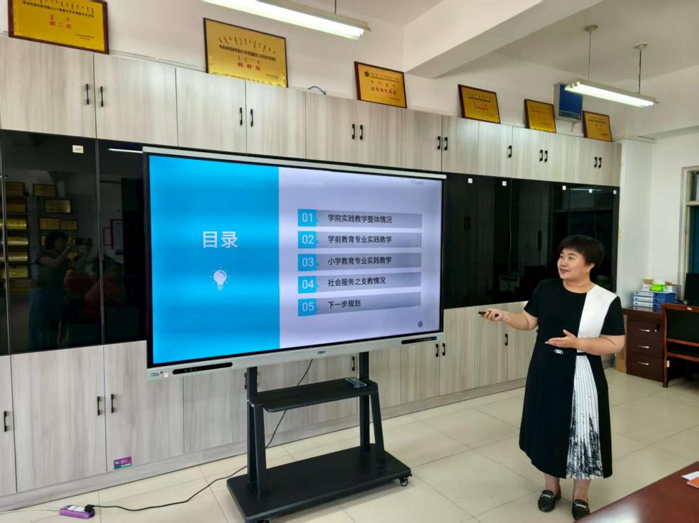 教育学院实践教研室主任王玉霞介绍了学院与多所小学建立实践基地的情况和在教学方法创新等方面取得的成果,以及在提升学生教学实践能力和创新思维方面的积极探索。