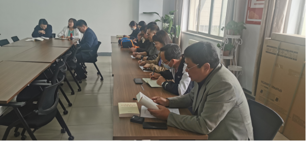 本次学习活动由经济管理学院书记赛音图书记主持和领学,学院教职工19人参加了此次学习,其中党员教师10人,主要学习书目为《习近平著作选读》和《习近平新时代中国特色社会主义思想专题摘编》。学习内容为“牢固树立四个意识,维护党中央权威”“加快构建中国特色哲学社会科学”“坚持和加强党的全面领导”“实施科教兴国战略,强化现代化建设人才支撑”。