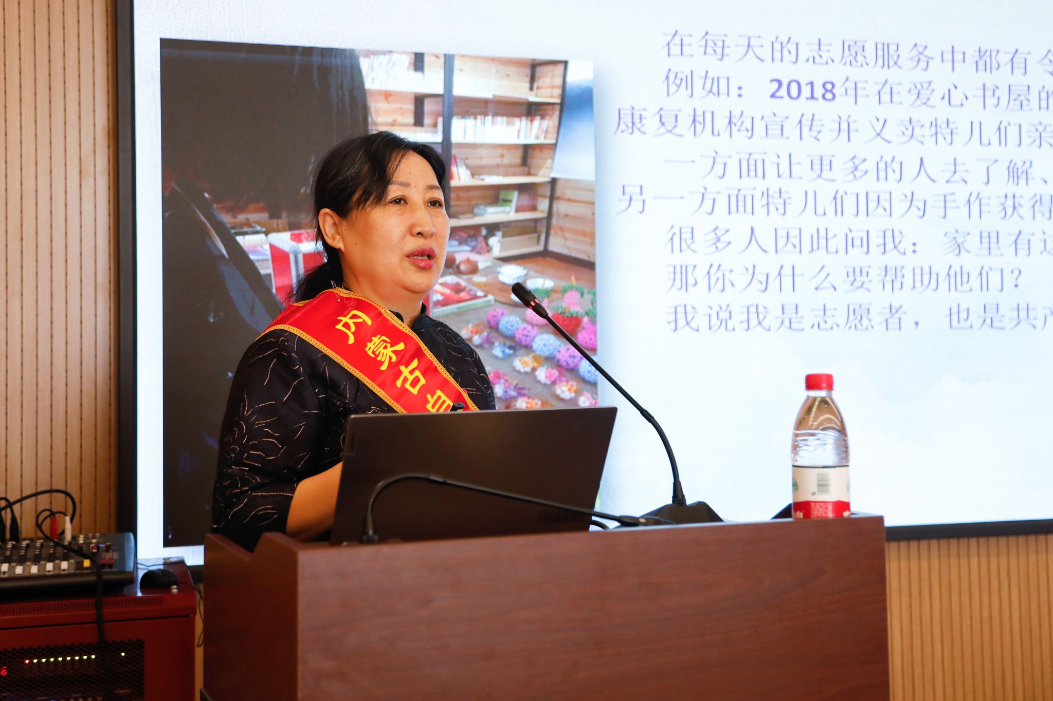 活动现场,何红老师结合自身经历,通过生动的语言、详实的事例、真挚的感情为广大师生讲述了她的感人事迹。何红作为一名热心公益事业的志愿者,创办了“七色阳光书屋”爱心书屋,并帮助孩子们义卖工艺品和绘画成品,不仅充实孩子们的生活,给孩子们带来希望和温暖,同时也吸引更多爱心人士参与到其中。何红把救人于难、解人之困当作自己的义务和责任,长期线上线下为贫困学生、孤寡老人、残疾儿童等捐款赠物献爱心。多年来,她组织参与了助残助学、建立公益书屋、义务献血、关爱老人、关注环保等众多公益项目,传递着公益正能量。她通过朴实生动的语言、感人至深的故事与师生分享了公益经历,让广大师生在讲座中感悟新时代雷锋精神、汲取奋进力量。
