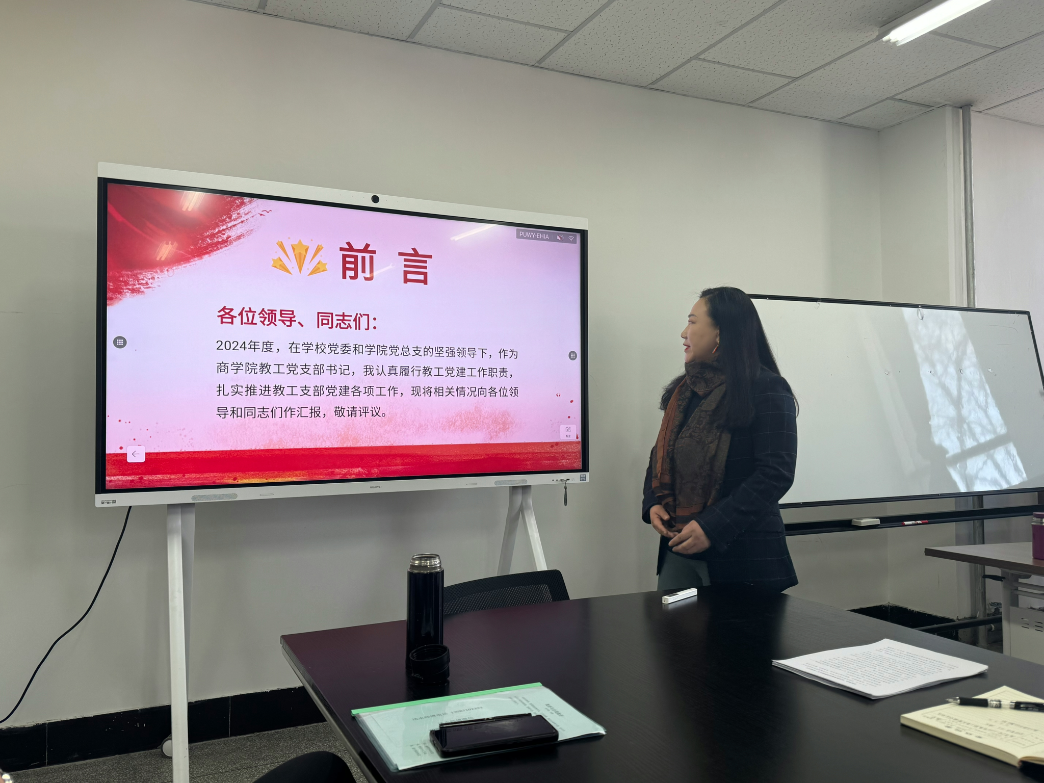 2025年3月20日下午14:30,商学院教工党支部在学院310会议室成功召开2024年度组织生活会及民主评议党员大会。本次会议由教工党支部书记新华主持,全体党员教师参加,旨在以深入学习贯彻习近平新时代中国特色社会主义思想为核心,紧密围绕学院的教育教学、科研创新、人才培养等重点工作展开。在通过深刻的批评与自我批评,进一步增强党员的党性修养,提升党组织的凝聚力与战斗力,为学院的高质量发展提供坚实的政治保障与组织支持。