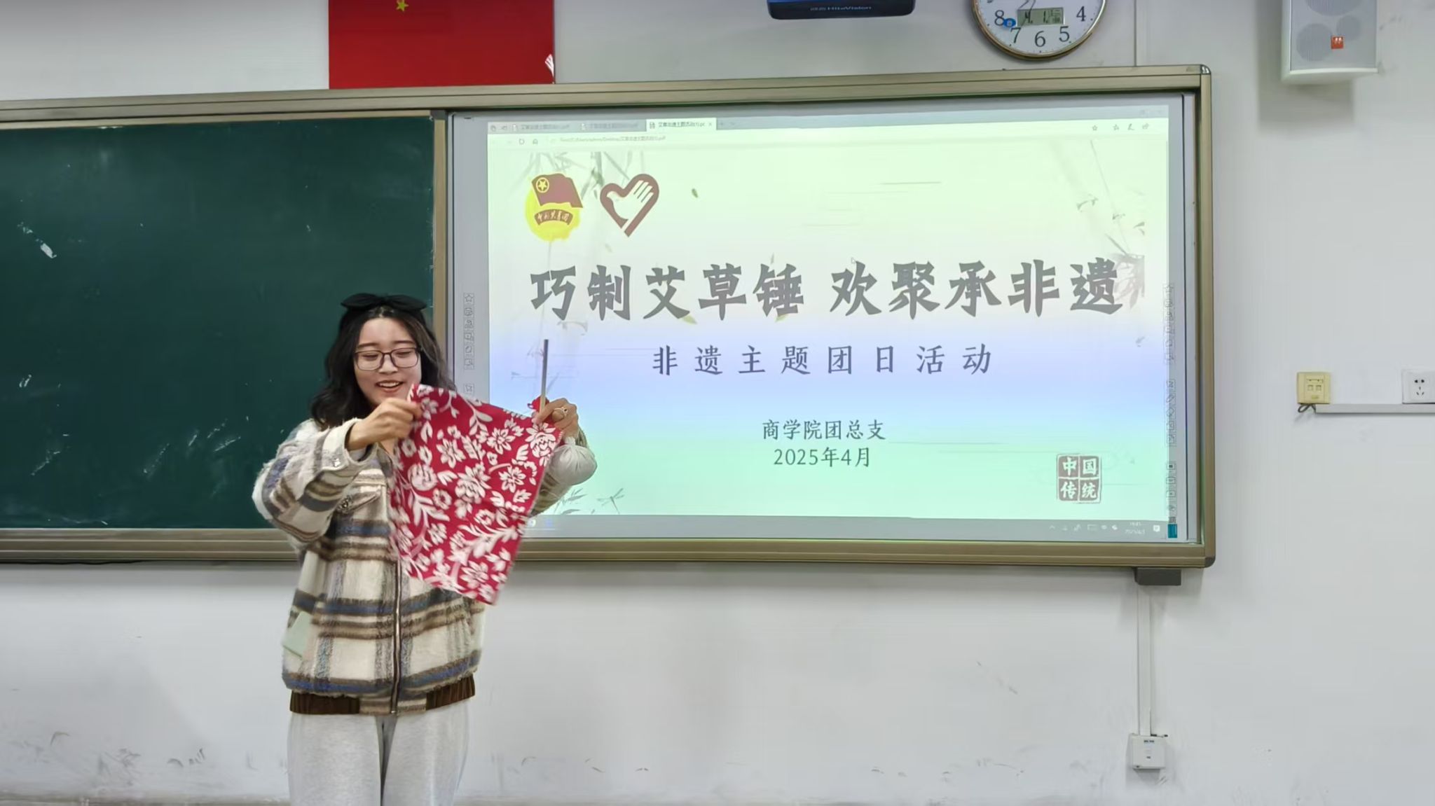 为传承中华优秀传统文化,4月6日,商学院团总支在尚智楼202教室举办"巧制艾草锤 欢聚承非遗"主题团日活动,60余名青年学子通过手工实践感受传统养生智慧。