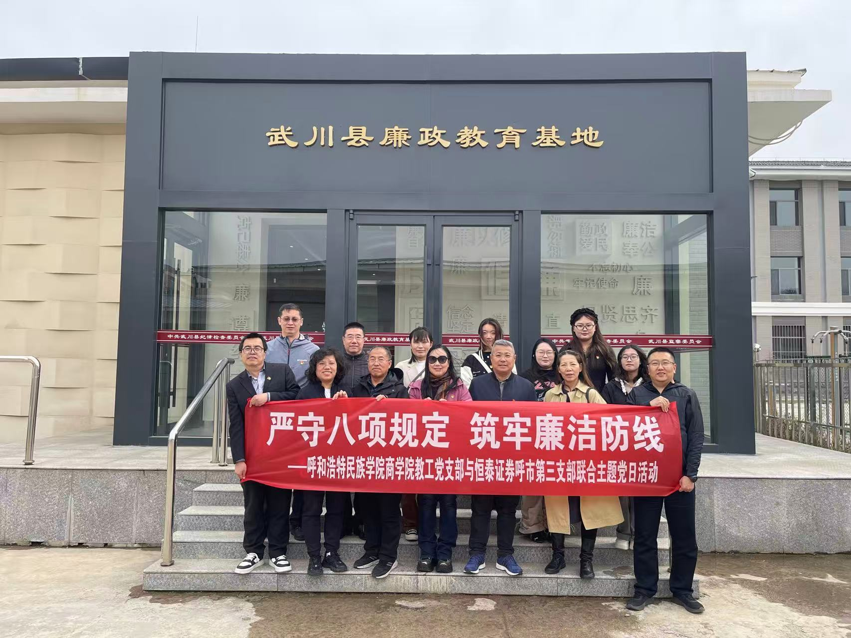 为深入学习贯彻习近平新时代中国特色社会主义思想和党的二十大精神,持续深化党风廉政建设,增强党员干部廉洁自律意识,2025年5月9日下午,商学院教工党支部与恒泰证券呼市第三支部携手参观学习武川县纪委廉政教育基地,开展了一场意义非凡的联合主题党日活动。