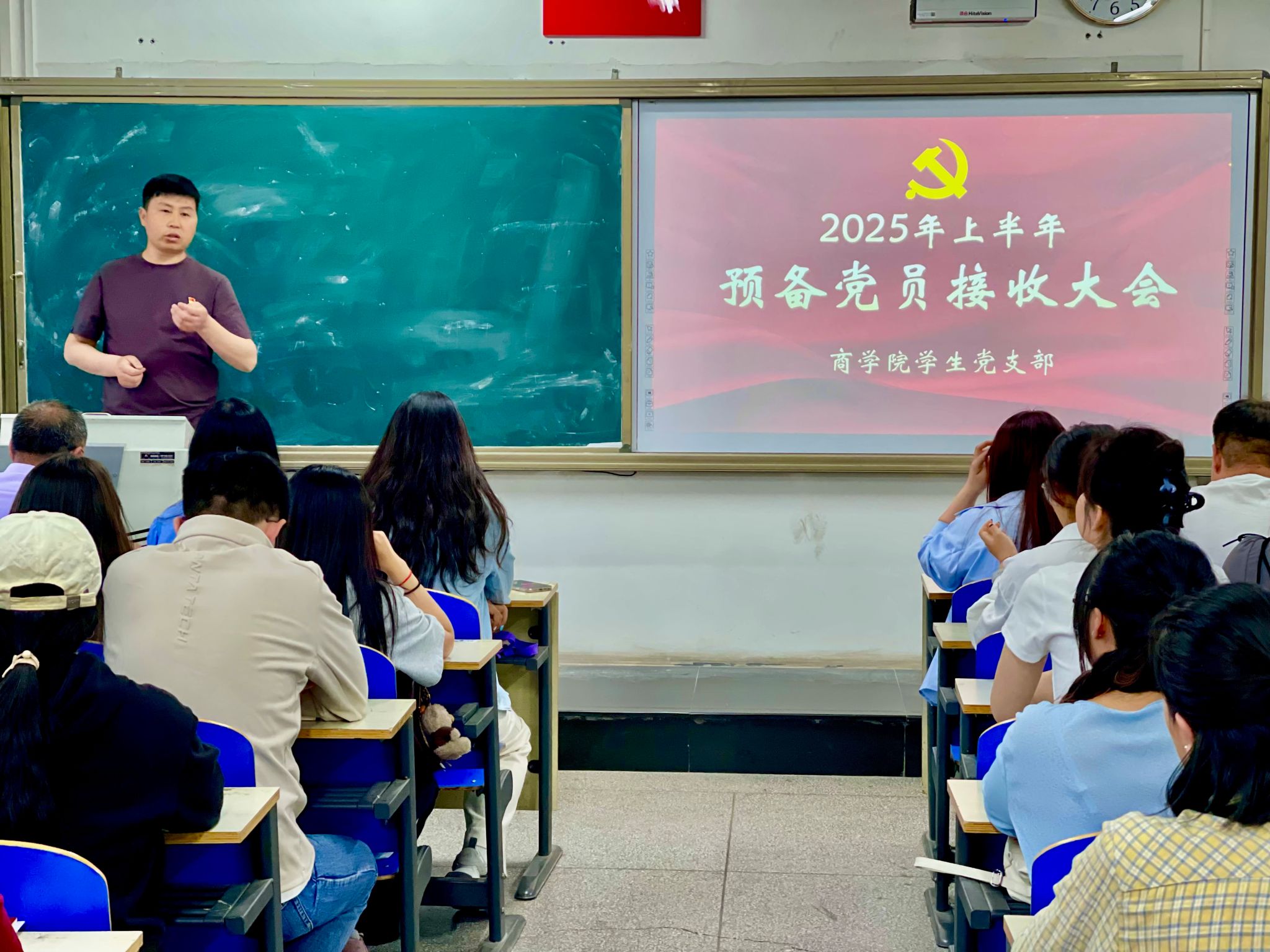 为进一步加强党组织建设、注入新鲜血液,6 月4 日,商学院学生党支部在尚智楼召开 2025 年上半年预备党员接收大会。学生第一党支部书记樊寒伟、学生第二党支部书记华国庆出席会议,全体学生党员参会。