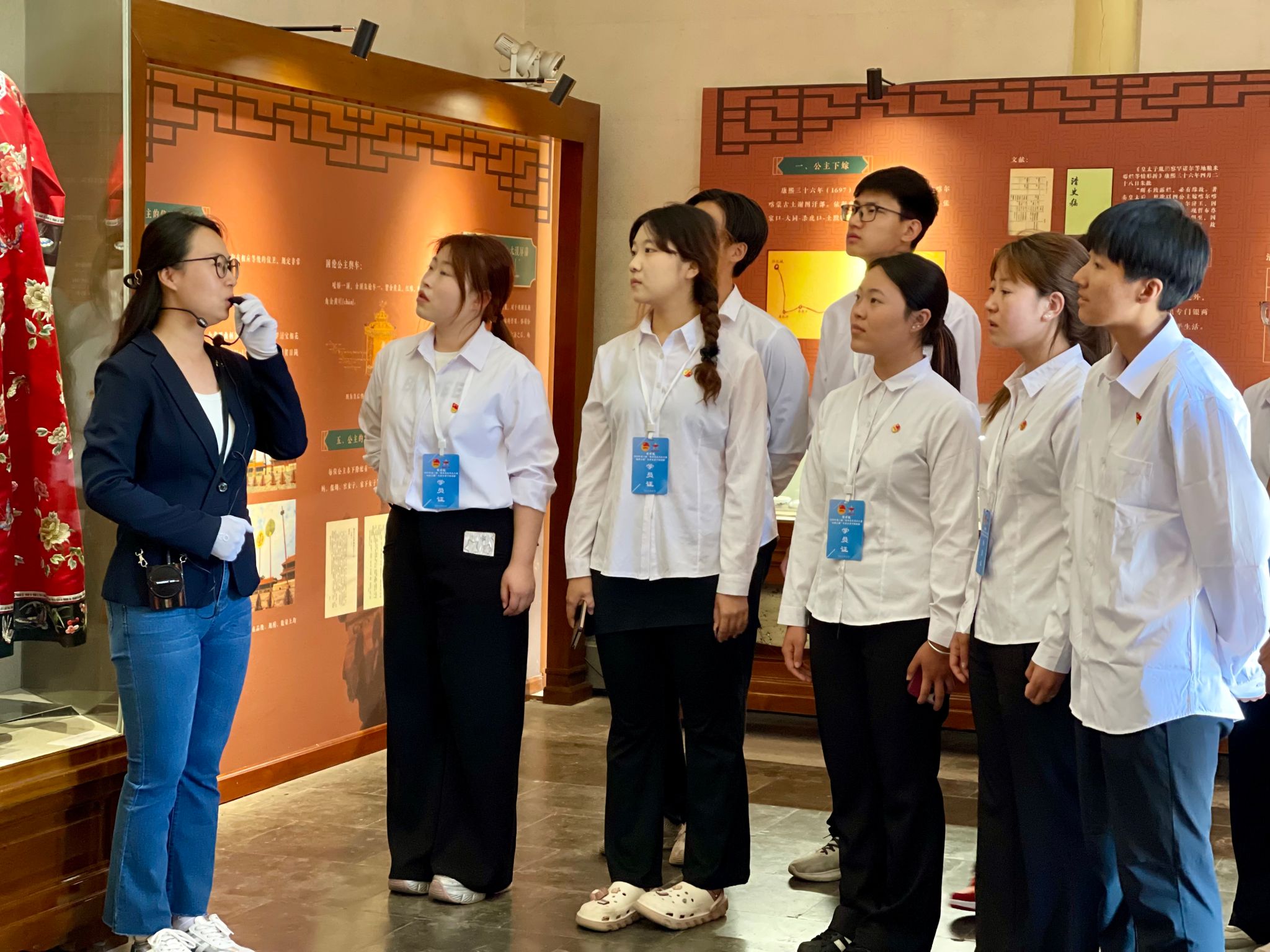 在讲解员带领下,全体同学进入公主府博物馆探寻历史遗迹,该博物馆不仅是满蒙联姻的历史见证,更是民族团结和交往、交流、交融的具体体现。