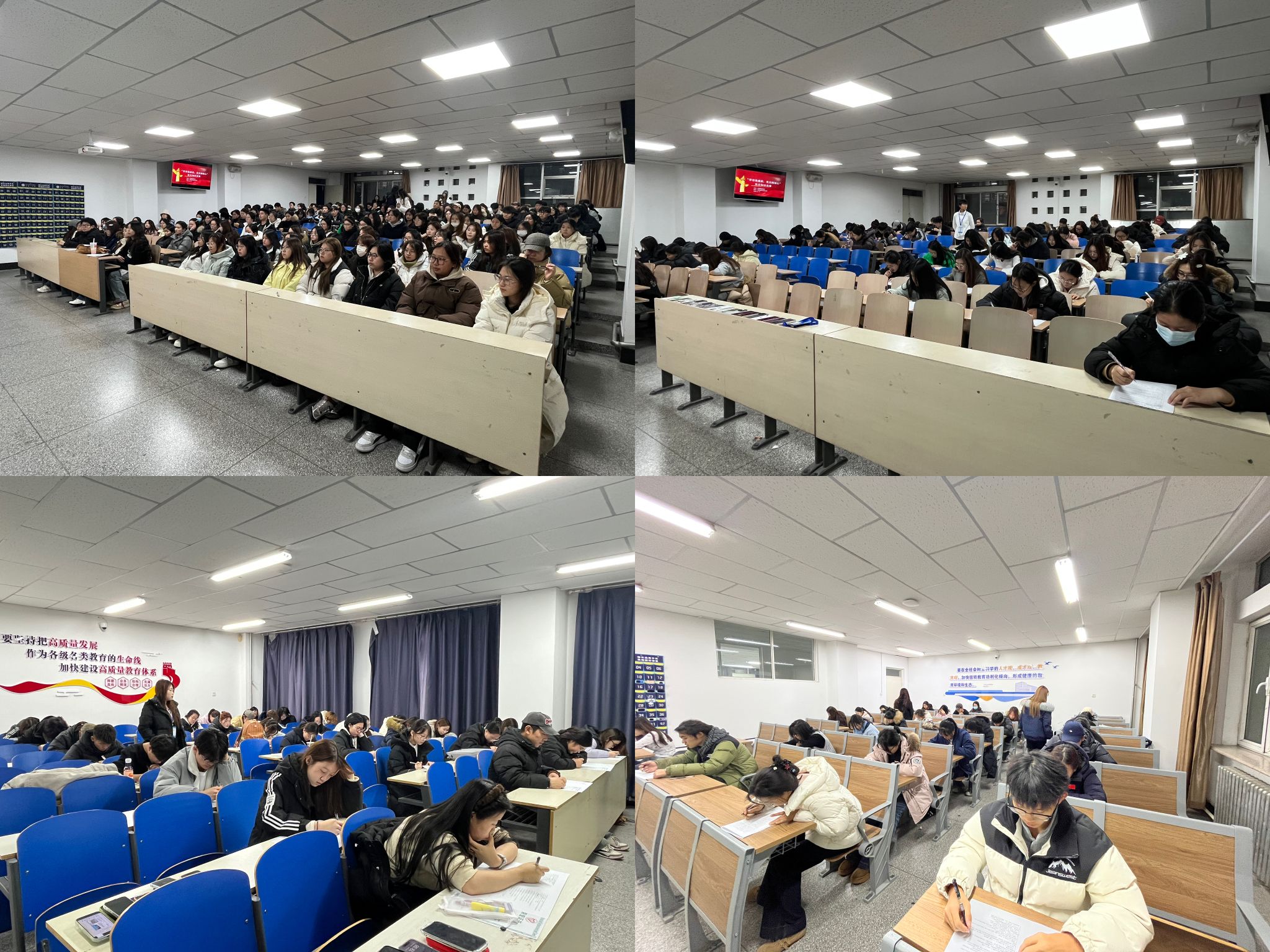 本次初赛以“夯实基础、以赛促学”为核心定位,题目设计精准聚焦党史核心知识点,全面涵盖党的诞生与发展光辉历程、重要会议(如中共一大、遵义会议、党的二十大)、革命先辈英勇事迹、新时代卓越发展成就等内容。题型以客观题为主,兼顾知识的广度与基础的深度。比赛采用“统一命题、分场作答、现场阅卷”的规范形式有序推进,各赛场秩序井然。参赛选手全神贯注、全力以赴,时而奋笔疾书以快速答题,时而眉头紧锁而认真思考,以严谨认真的态度充分展现出对党史知识的高度重视与扎实掌握。现场氛围紧张热烈且积极向上。