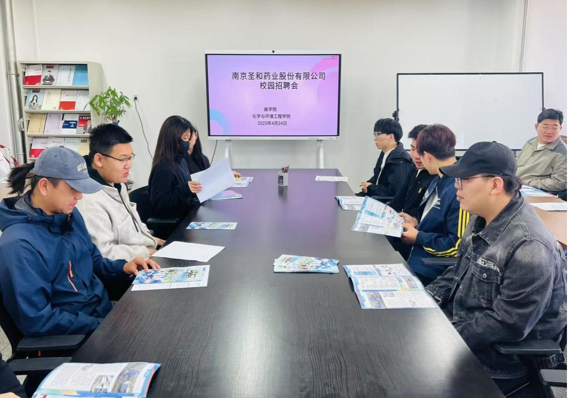 4月24日上午,商学院、化学与环境工程学院携手在尚智楼310室举办了南京圣和药业股份有限公司校园招聘会。本次招聘会以 “学科联动 精准育才 协同就业” 为主题,吸引了众多毕业生参与,岗位覆盖化工、营销等专业,提供就业岗位10余个。校党委委员、副校长高喜天、商学院领导班子、化学与环境工程学院领导班子、全体辅导员等出席了本次招聘会。