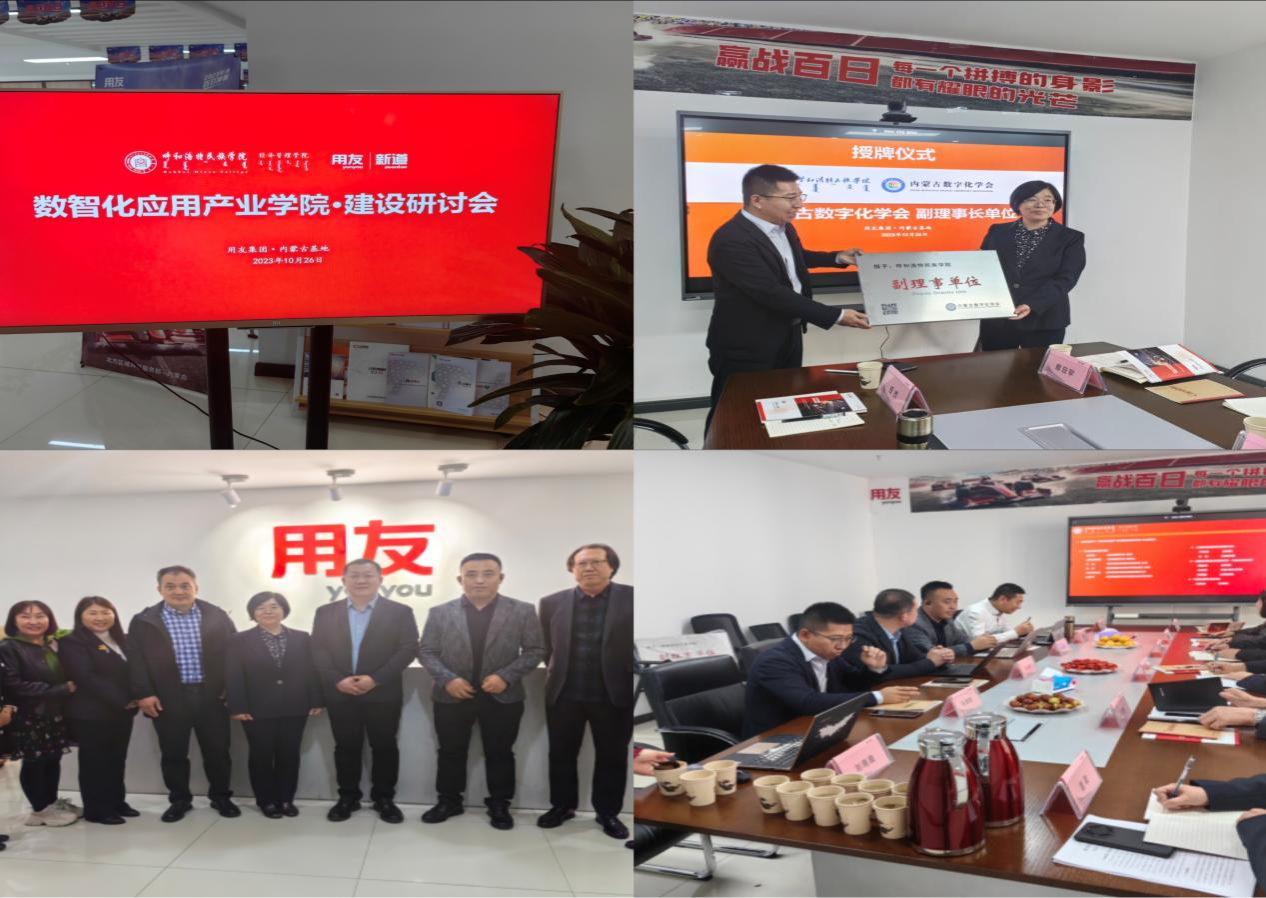 学院院长包诺敏、副院长赛希雅拉图带队教研室主任赴用友集团内蒙古基地参加校企合作,产教融合,产业学院建设研讨会。