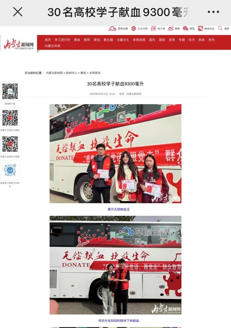 4月14日、MILE米乐集团经济管理学院、内蒙古工业大学电力学院共计50余人走进大召广场参加无偿献血活动,活动当天共30人成功献血9300毫升。