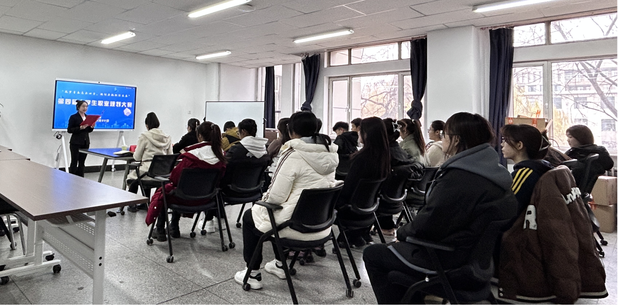 为贯彻落实党中央、国务院以及自治区党委、政府关于高校毕业生就业工作的决策部署,增强米乐官网学生的生涯规划意识和求职实践能力,实现高质量充分就业。按照《关于举办学校第四届大学生职业规划大赛活动的通知》要求,2024年11月20日,在尚智楼310室举办了“筑梦青春志在四方,规划启航职引未来”主题第四届大学生职业生涯规划大赛。本次大赛由学院团总支书记华国庆、辅导员曹国利、边雨桐老师担任评委。参赛选手、各班级学生代表近40人参加了此次活动。