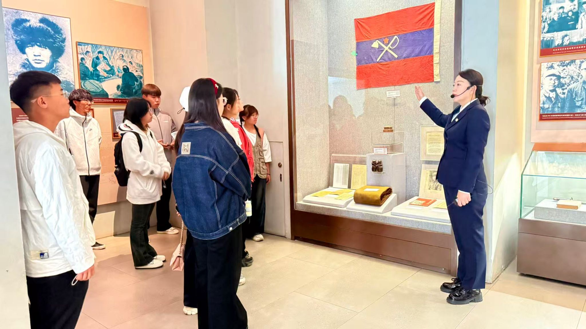 活动中,在纪念馆讲解员的引导下,师生们有序参观 “追求真理 投身革命”“民族团结 国家统一”“鞠躬尽瘁 公仆情怀” 等展区。通过历史照片、实物展品、场景复原及多媒体影像,大家系统梳理了乌兰夫同志的光辉一生从青年时期投身革命事业,到带领内蒙古各族人民开展抗日斗争、建立内蒙古自治政府,再到新中国成立后深耕民族地区发展。鲜活的史料让同学们深刻体会到革命先辈 “把一切献给党和人民” 的初心,以及扎根民族事业的责任担当。