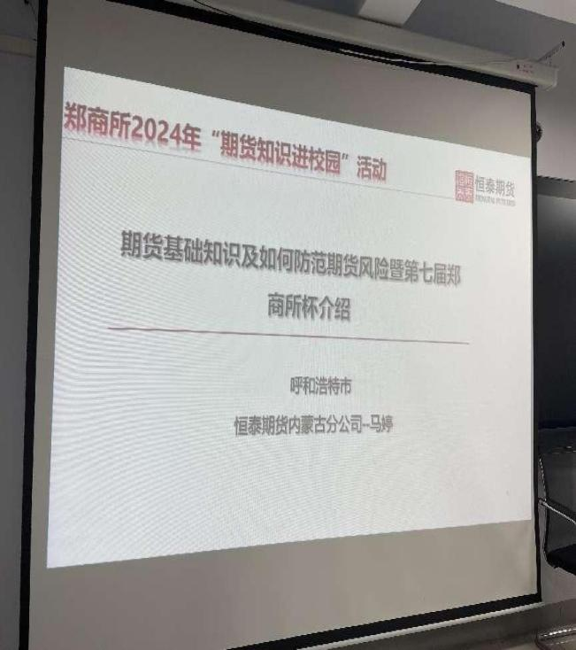 讲座由恒泰期货内蒙古分公司总经理助理马婷讲师主讲。讲师结合自己丰富的实践经验,通过案例分析和实际操作演示对期货基础知识及如何防范期货风险以及“郑商所杯”全国大学生金融模拟交易大赛概况进行了深入剖析,使学生们不仅对期货交易的基础知识更加深刻认识,并对非法证券期货诈骗和交易者适当性有了进一步的了解,更是对“郑商所杯”全国大学生金融模拟交易大赛情况及动手进行了现场实操模拟。