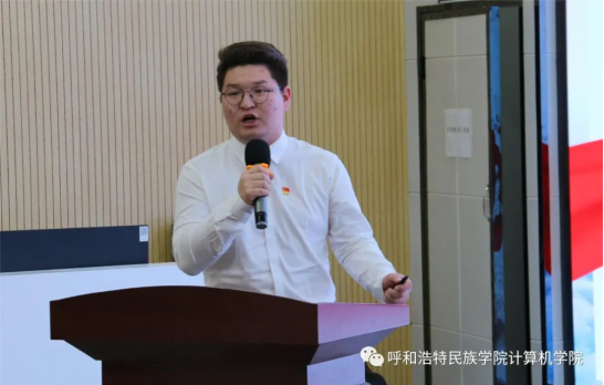 为引导大学生更加由衷地感恩党、听党话、跟党走,不断增强对伟大祖国、中华民族、中华文化、中国共产党、中国特色社会主义的认同,促进各民族在中华民族大家庭中像石榴籽一样紧紧抱在一起,为完成习近平总书记交给内蒙古的五大任务和全方位建设模范自治区凝聚精神力量,进一步教育引导学生党员队伍学好新时代理论,讲好新时代故事。计算机科学学院党总支于9月27日晚在北图书馆一楼报告厅,开展第二届“石榴籽心连心,民族团结共繁荣”主题微党课比赛,出席本次比赛的嘉宾有计算机科学学院党总支书记雪梅、经济管理学院副院长赛希雅拉图、计算机科学学院党总支副书记色登丹巴。