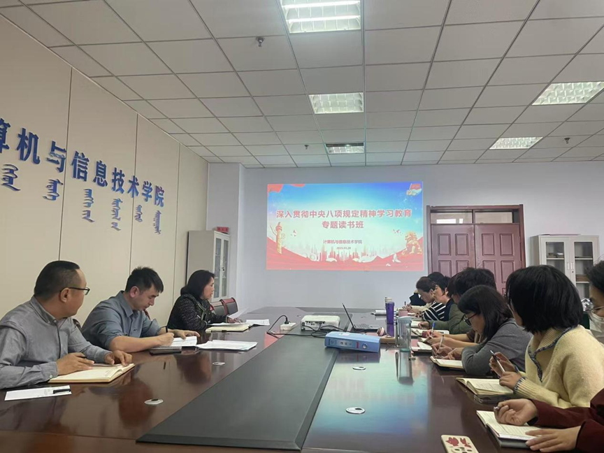 2025年3月28日,学院在综合楼1008会议室召开"深入贯彻中央八项规定精神学习教育专题读书班",理论中心组成员及全体教工党员参加。