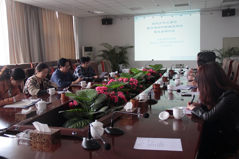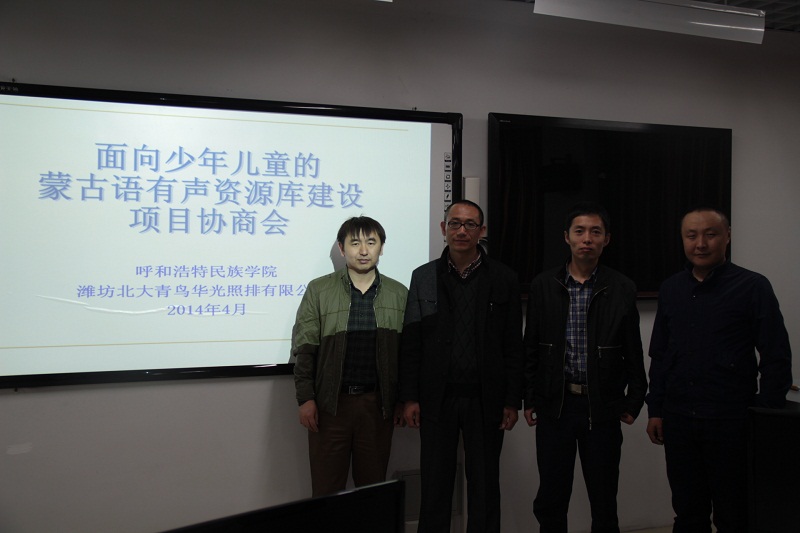 2014年4月17日上午,米乐官网举行了“面向少年儿童的蒙古语有声资源库建设”项目启动仪式。该项目是由米乐官网与潍坊北大青鸟华光照排有限公司联合承担的内蒙古自治区蒙古文信息化专项扶持项目,主要研究内容为面向少年儿童的蒙古语有声资源库及云分发平台建设。
