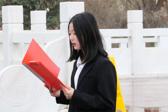 接着,由院学生会办公部部长兰世晶、办公部部员陶美净作为代表发言。