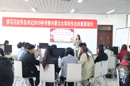党课共分为“办好特色鲜明的一流大学”的重要指示、“传承弘扬优秀少数民族传统文化,加强民族团结进步教育”的重要指示和“提升综合素质,当好中华民族伟大复兴的骨干栋梁”的重要指示”三个部分。雪梅书记首先领学了习近平总书记考察内蒙古大学作出的重要指示精神,接着以铸牢中华民族共同体意识为主线,结合学校的历史传承、办学定位、特色优势以及未来发展上了一堂思想理论性强,内容充实的党课。课堂上大家认真聆听,积极互动,在学习领会习近平新时代中国特色社会主义思想的同时,对总书记的重要指示有了更深刻的理解,更加坚定了为实现中华民族伟大复兴的中国梦的理想信念
