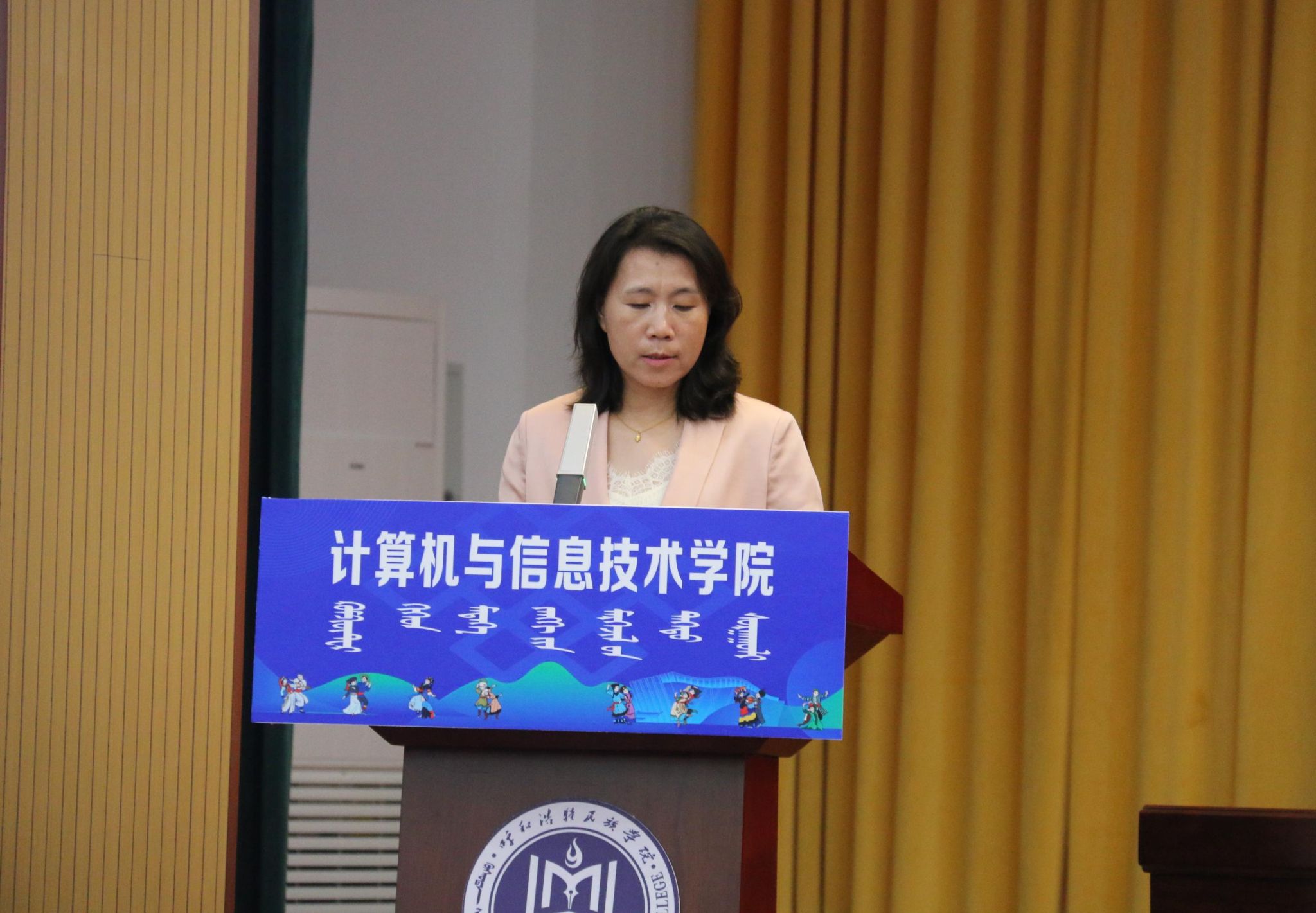 2024年8月31日下午,计算机与信息技术学院在学术报告厅召开2024级新生见面会暨军训动员会,学院党总支书记王水英、院长包乌格德勒、党总支副书记色登丹巴、团总支书记包巴雅力格及2024级新生班主任、辅导员、2024级全体新生参会。由学院团总支书记包巴雅力格主持会议。