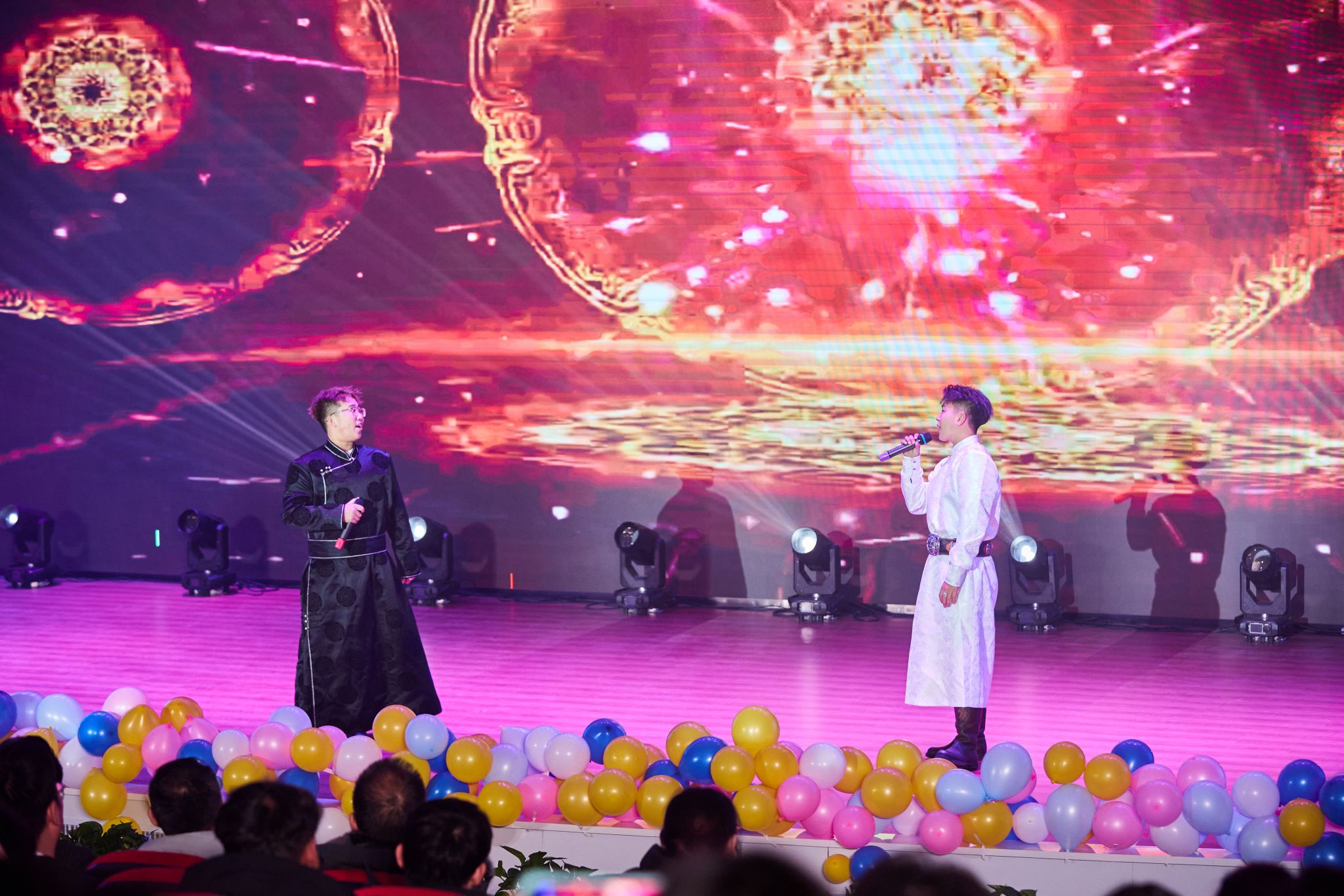 晚会以呼麦、马头琴《快语》和民族舞《草原晨牧》拉开帷幕。随后节目轮番登场,京剧《霸王别姬》的水袖翩跹,让新生领略传统文化的雅致;相声《听学长说》以幽默口吻拆解校园生活“通关秘籍”,引得全场捧腹;乐队演绎的《斑马 斑马》、歌伴舞《万丽》则将青春张力拉满,蒙语歌曲的婉转旋律与民族舞《宴歌》的欢快舞步,更让地域文化气息浸润每一处角落。