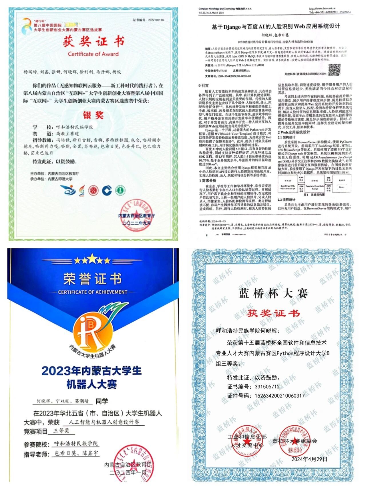 2024年12月获全国华北五省大学生计算机应用大赛二等奖