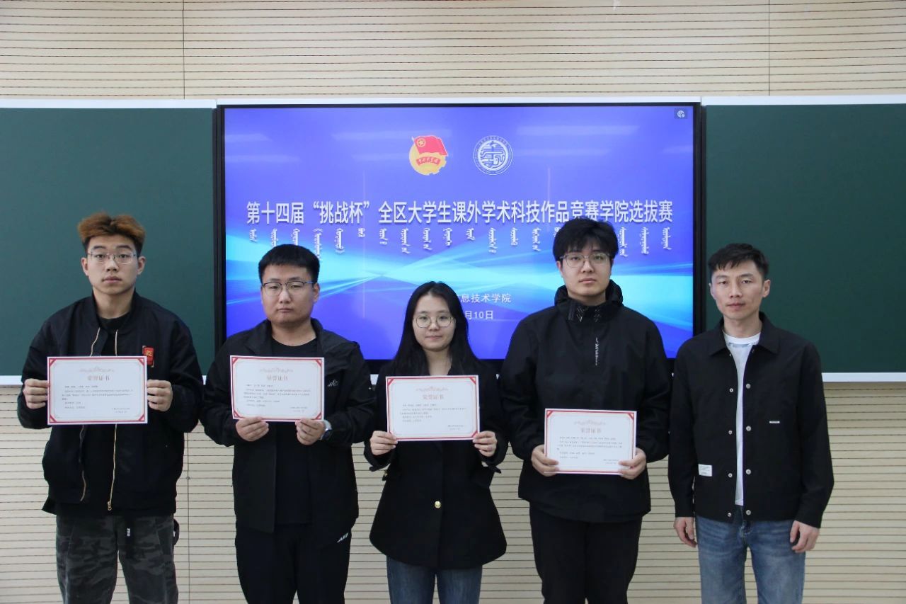 2025年4月15日,在综合楼802教室,举行第十四届“挑战杯”大学生课外学术科技作品竞赛颁奖仪式。本次比赛最终评选出一等奖3项、二等奖4项、三等奖8项、优秀奖15项。