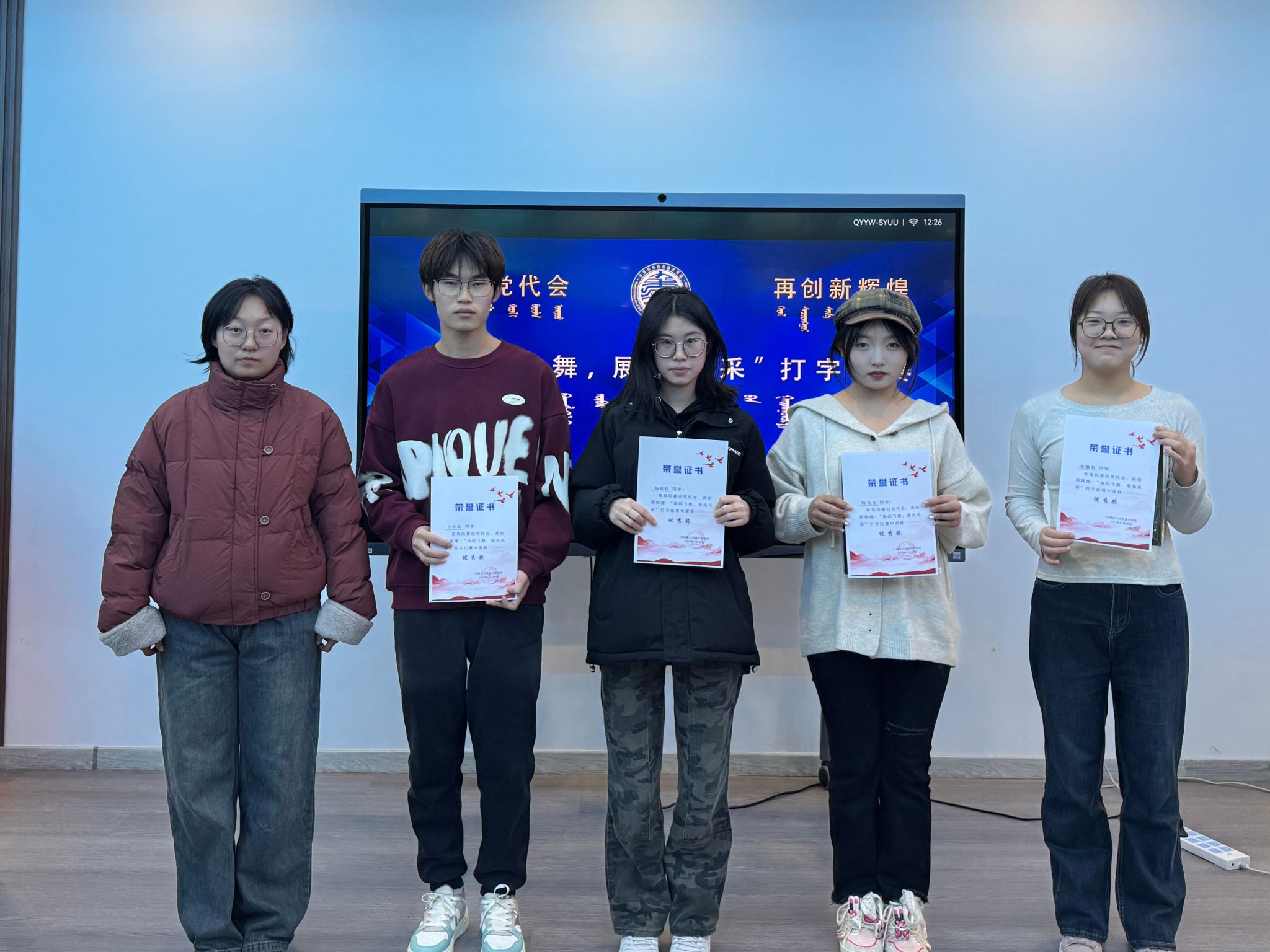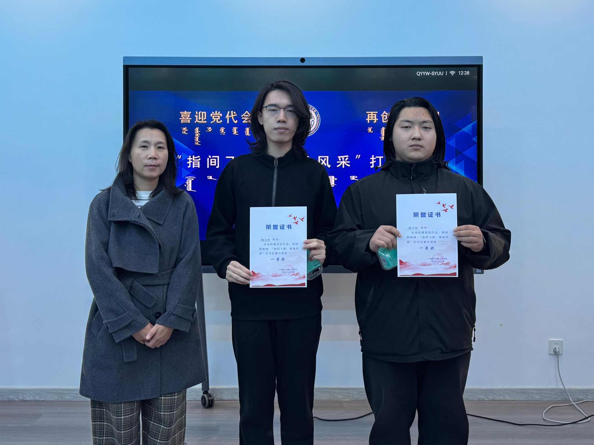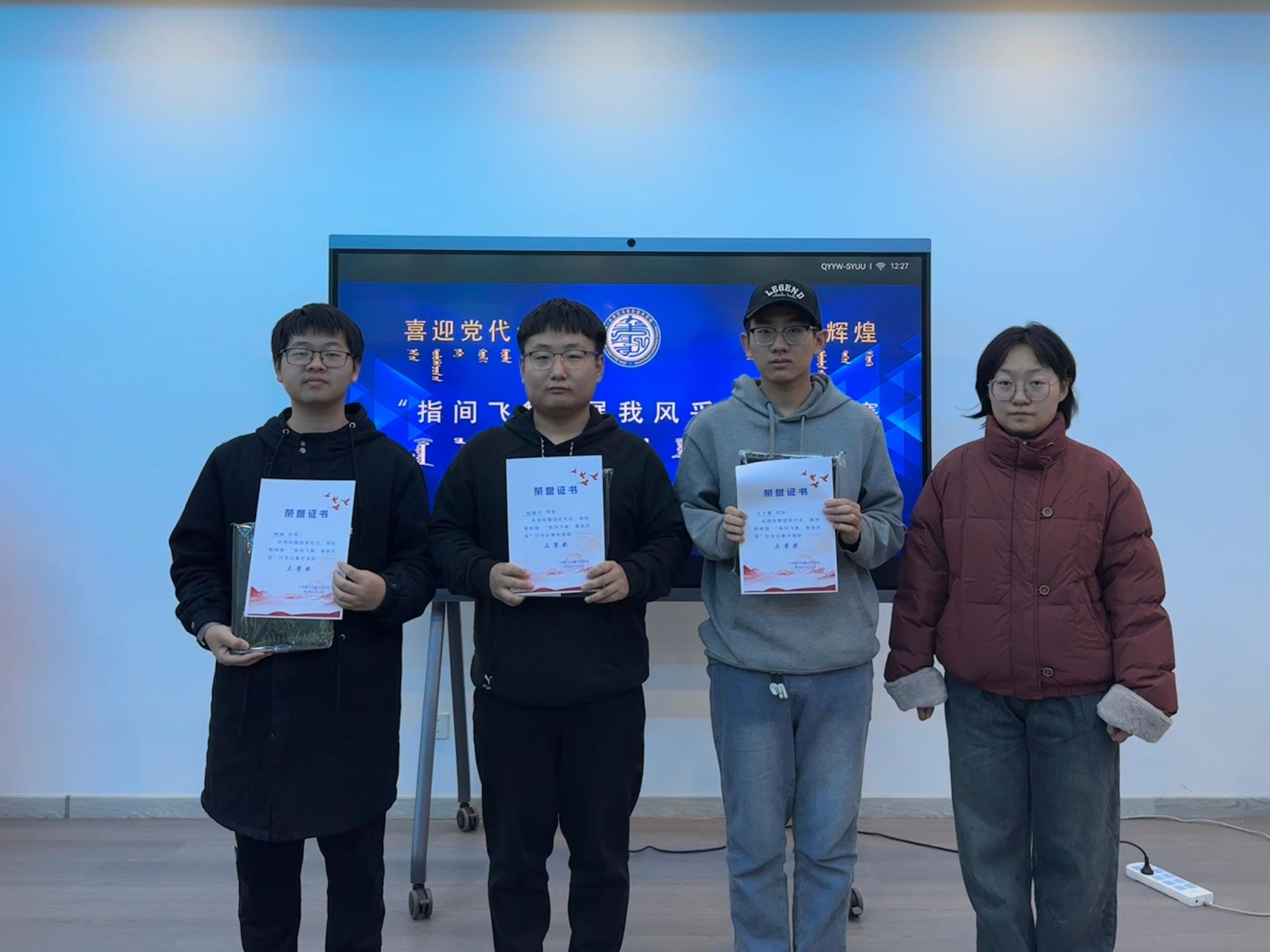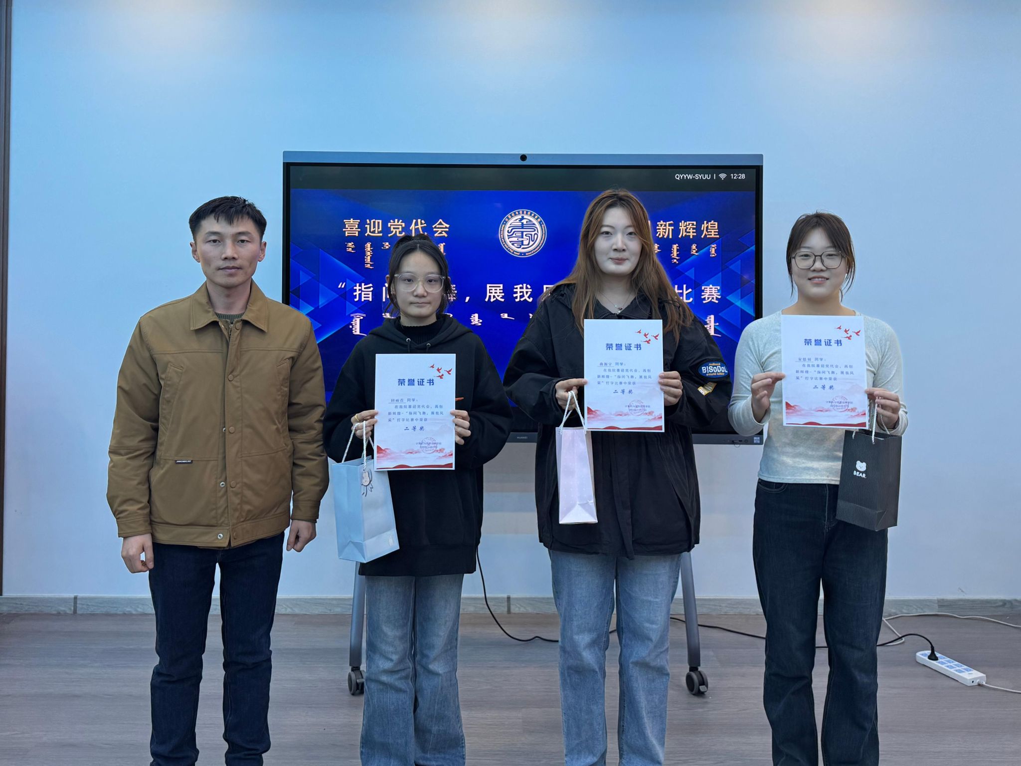 11月19日中午,米乐官网党总支书记王水英、团总支书记包巴雅力格、辅导员云磊作为颁奖嘉宾为获奖同学颁奖。