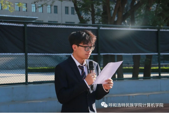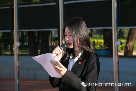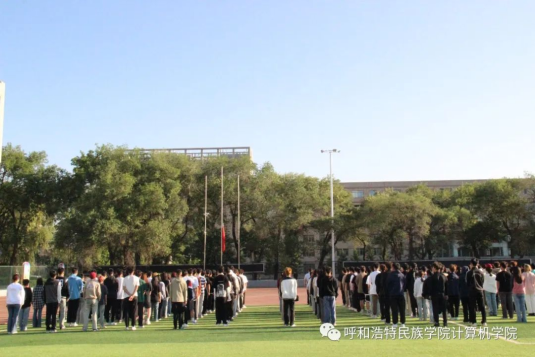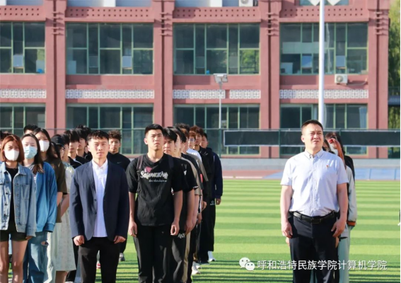 为深入贯彻落实习近平新时代中国特色社会主义思想和党的二十大精神,铸牢中华民族共同体意识,厚植爱国情怀,培养学生爱国之情,6月5日,计算机学院在南院操场举行“学思想、强党性、重实践、建新功”主题升国旗仪式。计算机学院党总支副书记赛希雅拉图、辅导员包巴雅力格、学生会成员、2022级全体学生共同参加了本次升旗仪式,活动由院学生会办公部部长、2021级云计算1班兰世晶同学主持。