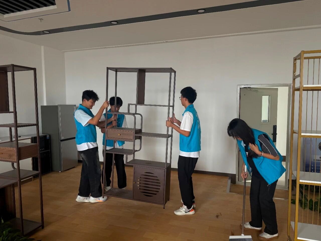 活动现场,志愿者们手持抹布、扫帚等工具,迅速投入各自负责区域的清扫工作。大家分工协作,清扫地面、擦拭黑板讲台、清理窗台灰尘,以不怕脏、不怕累的劲头,细致清理每一处卫生死角。经过齐心协力的打扫,教室地面一尘不染,桌椅摆放整齐,整体面貌焕然一新。
