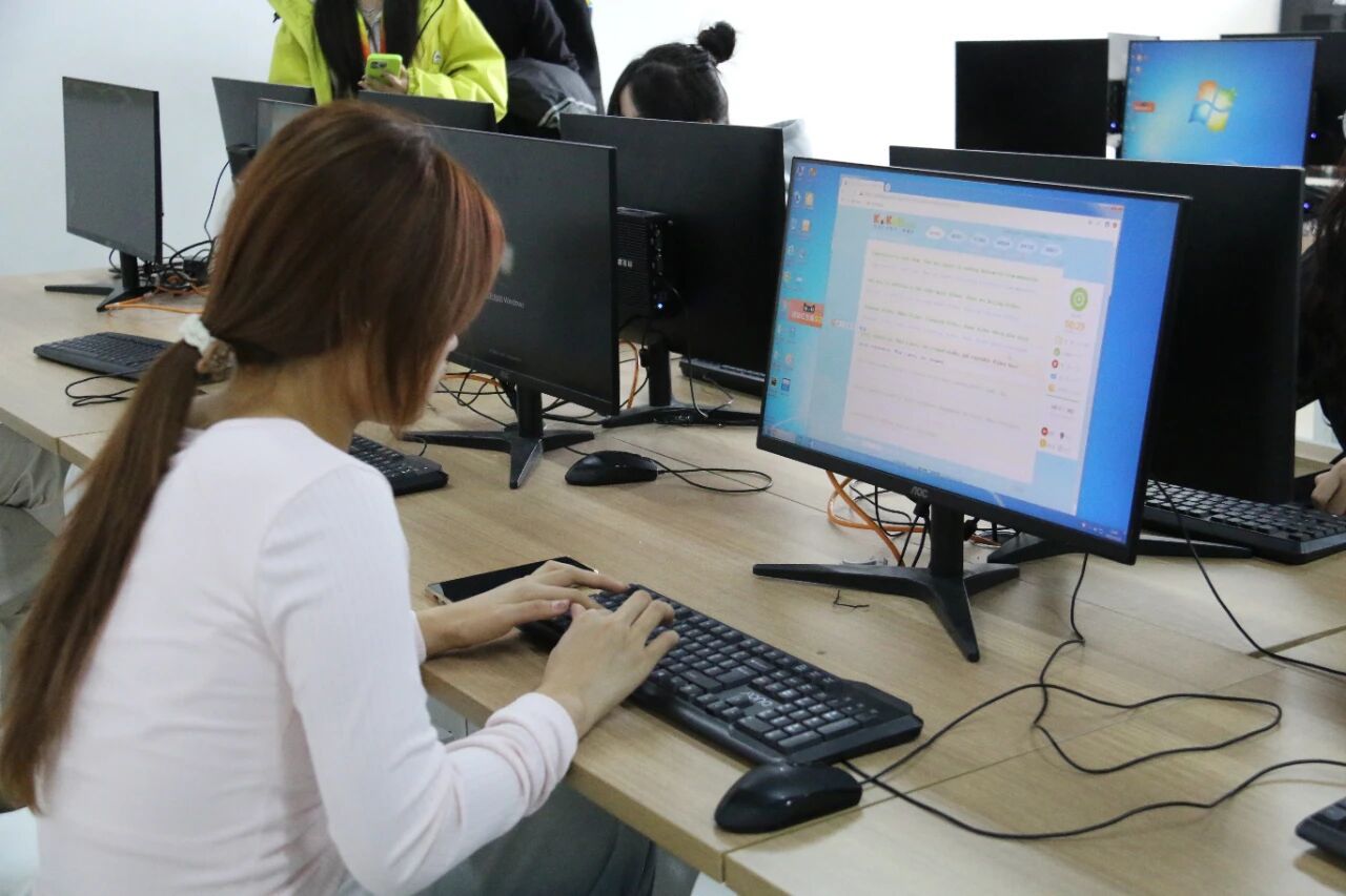 为丰富校园文化生活,激发学生学习信息技术的兴趣,调动学生学习的踊跃性,同时检验学生计算机基本操作技能,形成良好的学习氛围,2025年10月28日中午,在综合楼10楼机房举办了首届“飞扬杯”打字比赛活动,来自不同年级、专业的150余名学生参加此次活动。