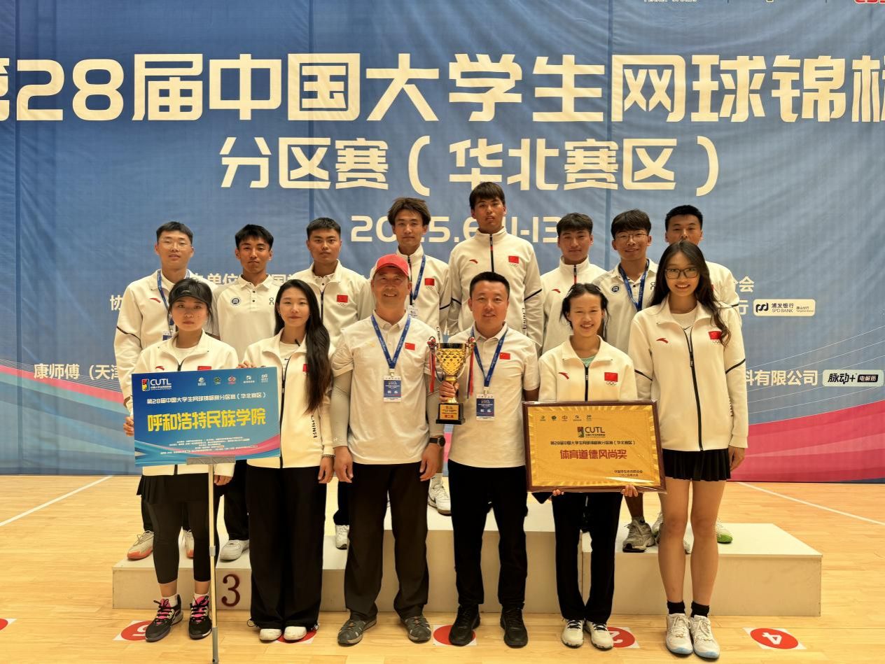 6月10日至13日,第28届中国大学生网球锦标赛华北赛区比赛在唐山花海星球体育网球中心火热开赛。米乐官网网球队在主教练吴那仁朝格图老师和德力黑老师的带领下,与来自北京、天津、河北、内蒙古、山东等地30多所高校的202名运动员同场竞技,经过三天激烈角逐,最终脱颖而出,夺得女子丙B组亚军,并荣获“体育道德风尚奖”,创造了米乐官网网球队建队以来的最佳战绩。
