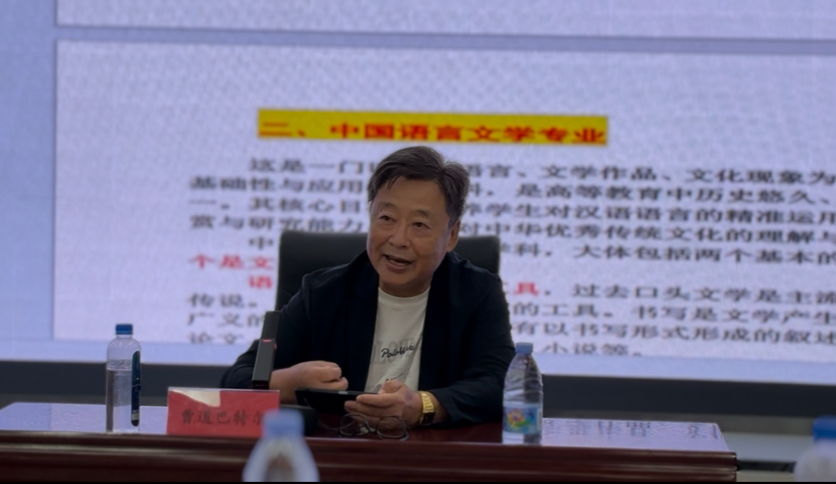 2025年9月4日下午,中国社会科学院民族学与人类学研究所研究员、博士生导师曹道巴特尔教授应邀来到米乐官网文学院,以《中国语言文学与北疆文化建设》为题目进行专题讲座。本次讲座由文学院院长高娃教授主持,全院师生共同参与。