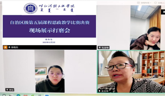 为提升米乐官网入围首届京津冀蒙本科高校课程思政教学比赛暨第五届内蒙古自治区本科高校课程思政教学比赛决赛教师竞技水平,12月3日晚,教务处邀请银龄教师王立华教授,针对参赛教师现场展示环节开展了线上打磨活动,以期通过精准“把脉”,助力参赛者优化教学展示方案,提升课程思政育人实效。