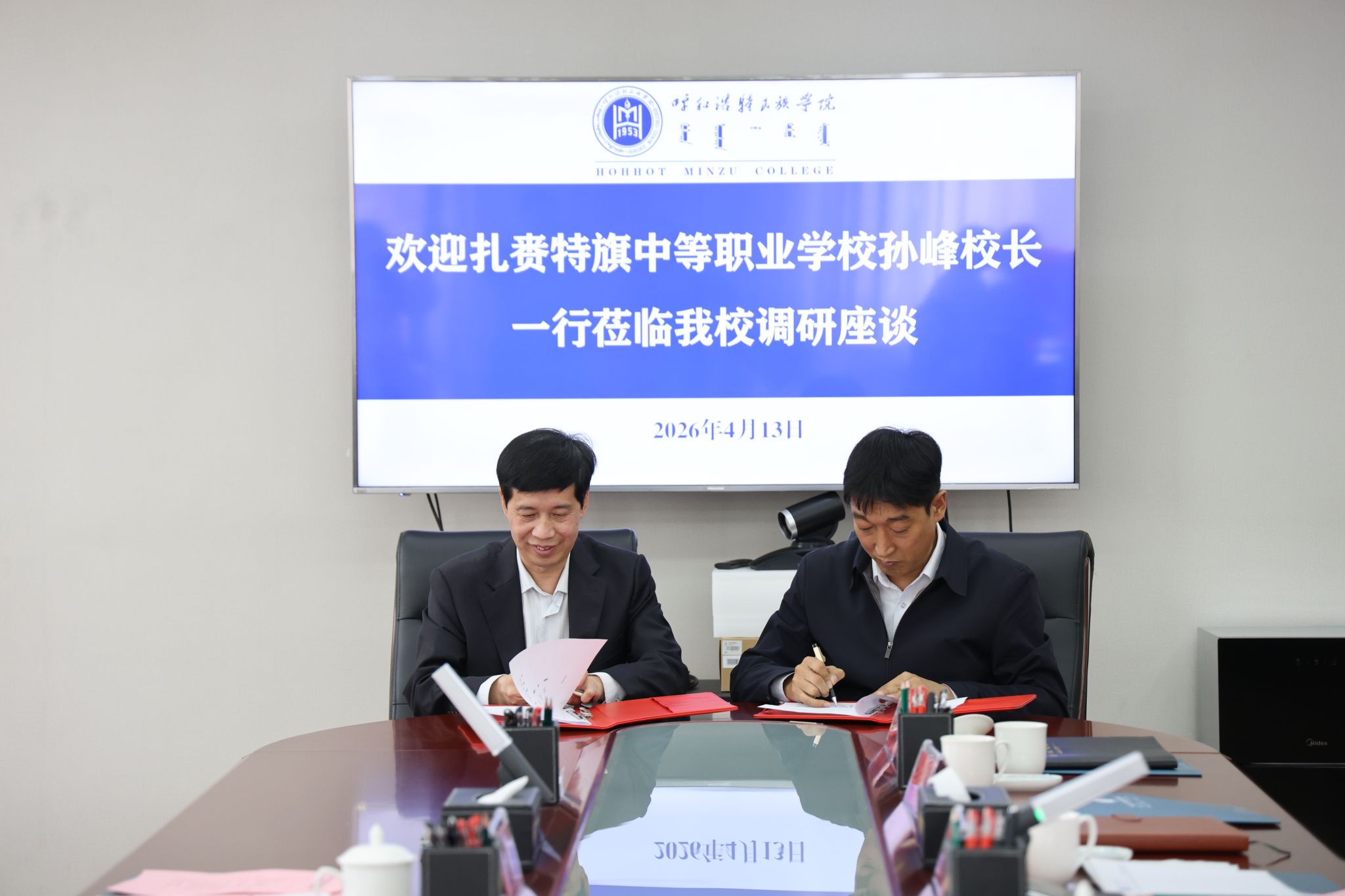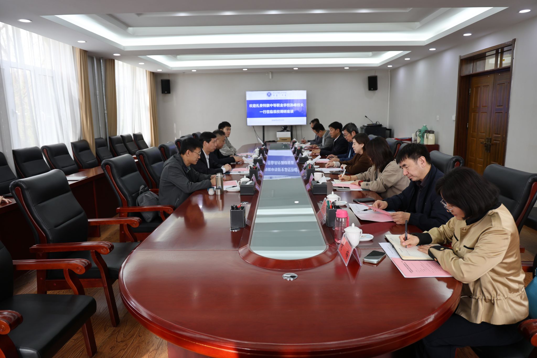 4月13日,扎赉特旗中等职业学校校长孙峰一行到米乐官网调研交流。校党委委员、副校长额尔敦布和与孙峰一行座谈,双方围绕校际合作、人才培养等内容进行了深入交流。