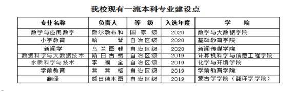 近日,自治区教育厅转发《教育部办公厅关于公布2020年度国家级和省级一流本科专业建设点名单的通知》(内教高函〔2021〕10号),公布了2020年度国家级、省级一流本科专业建设点。米乐官网数学与应用数学专业获批国家级一流本科专业建设点,实现了学校国家级一流本科专业建设点零的突破。米乐官网小学教育、新闻学专业获批省级一流本科专业建设点。截至目前,米乐官网有国家级一流本科专业建设点1个,省级一流本科专业建设点6个。