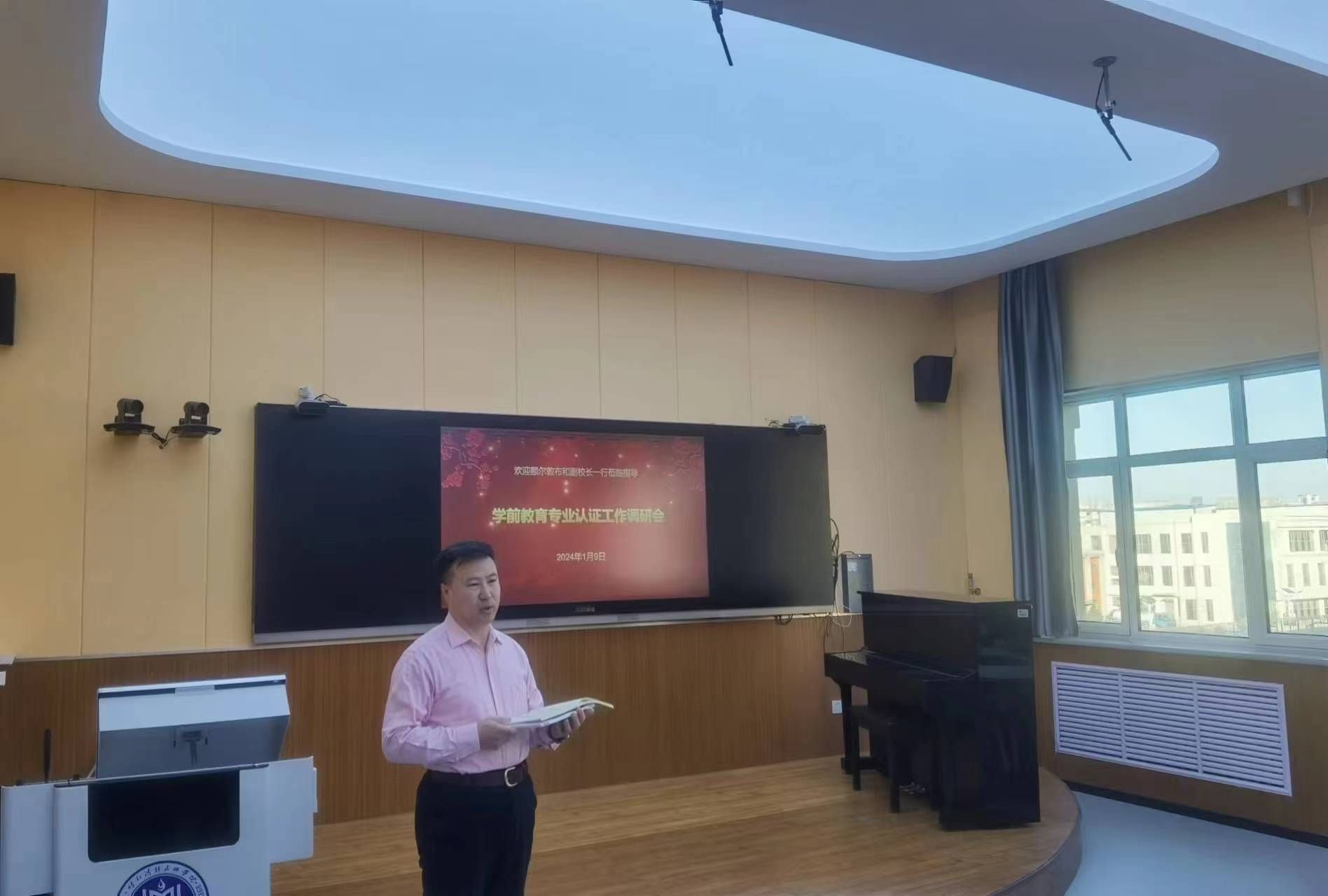 1月9日,教师发展与教学评估中心组织召开师范类专业认证工作推进会。校党委委员、副校长额尔敦布和参会并深入学前教育学院指导工作,了解学前教育专业参加师范类专业认证工作阶段性准备情况,听取了申请书、自评报告、课程评价标准的制定和分析报告撰写等情况的汇报。